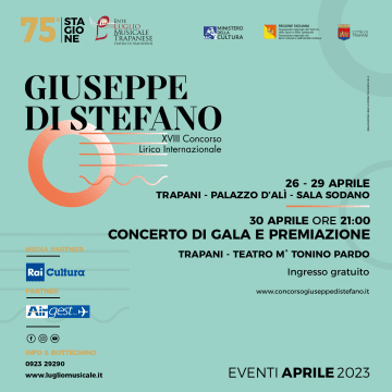 La S. V. è invitata a partecipare al Concerto di Gala del XVIII Concorso Lirico Internazionale "Giuseppe Di Stefano"che si terrà domenica 30 aprile, alle ore 21.00, presso il Teatro M° Tonino Pardo, in Via Francesco Sceusa 6, a Trapani.